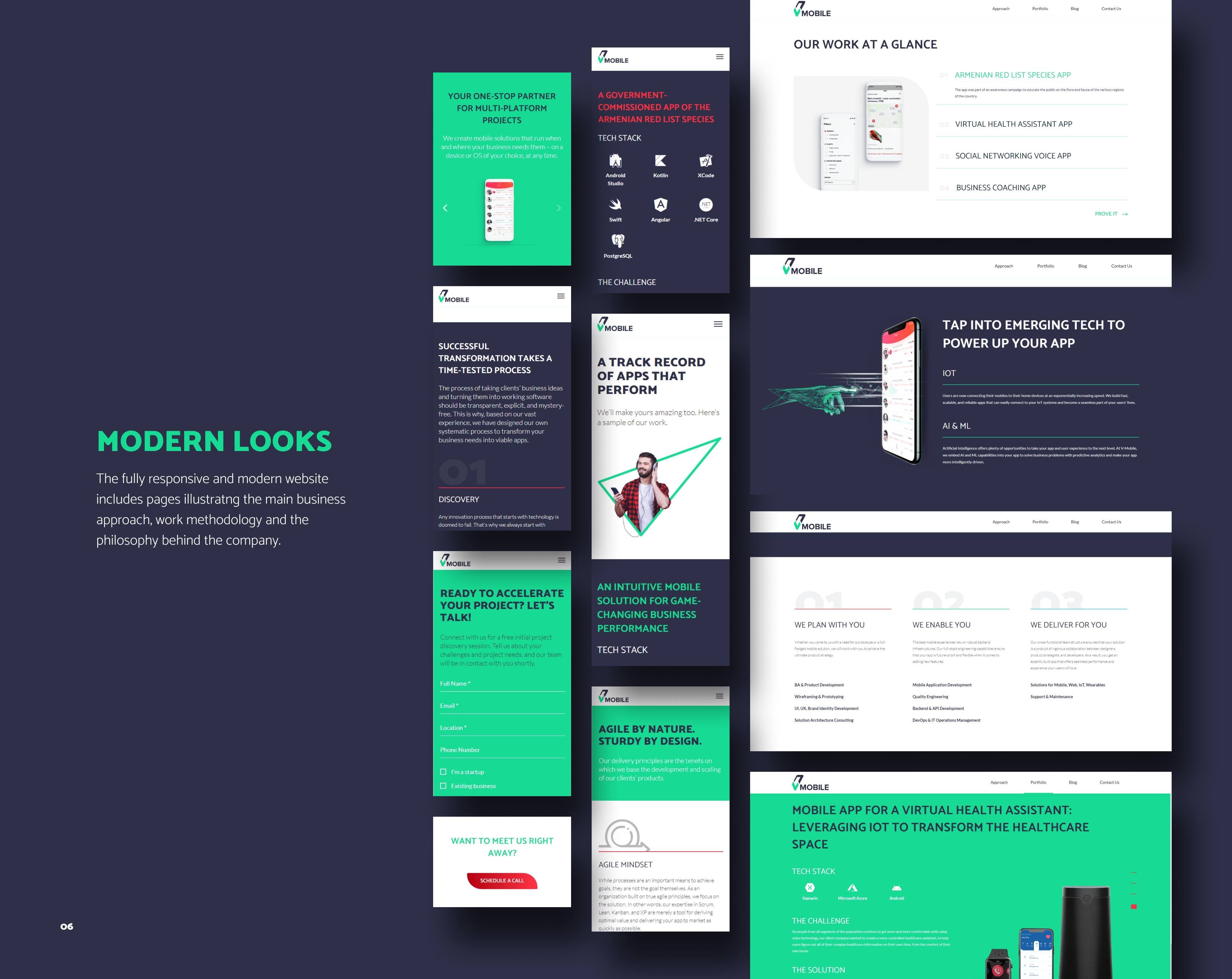 This project includes an identity pack for V-Mobile, an innovative and cutting-edge mobile development company.